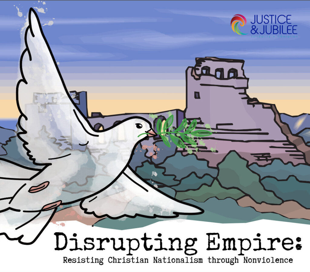 Disrupting Empire: Resisting Christian Nationalism through Nonviolence is a one-day workshop that teaches people about the history of the fraught relationship between Church and State and equips attendees with practical tools of nonviolent resistance. Participants will learn about the history of the relationship between Church and State, be trained in nonviolent responses to conflict, and connect and conspire with like-minded folx.